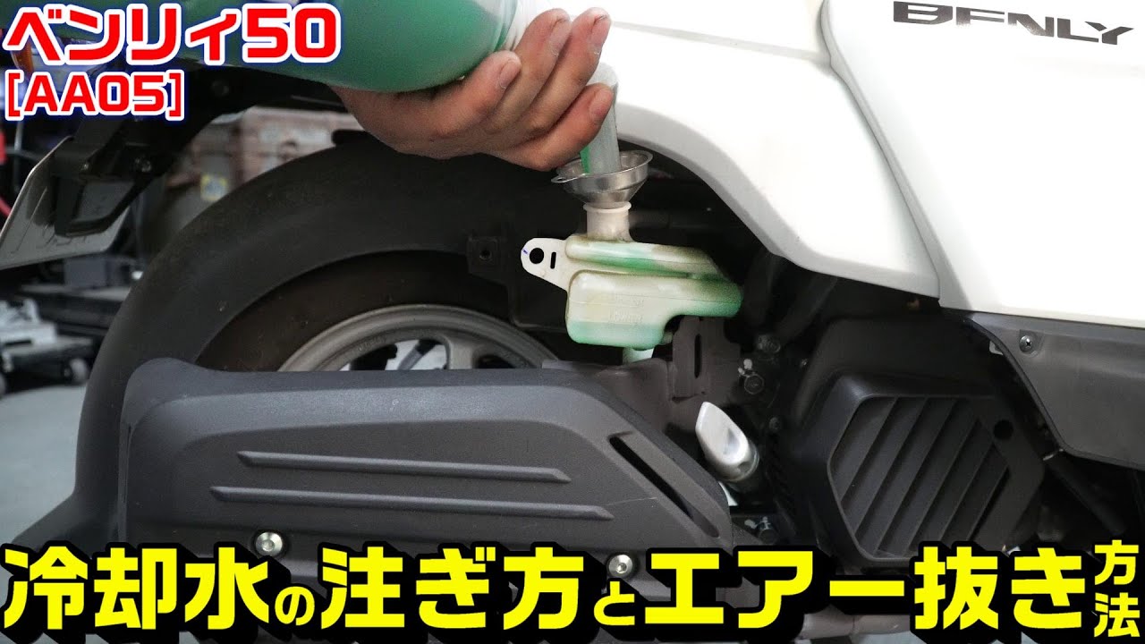 【ベンリィ50|AA05】冷却水の注ぎ足し・エアー抜き作業動画