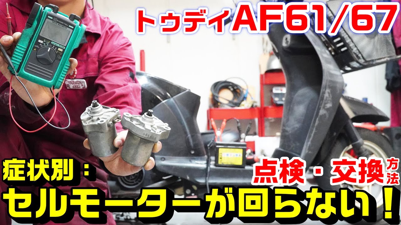AF67の場合も”ほぼ”同じですがキャブレターの後方下にあるAF61に対してインジェクション横下にあるAF67は前準備が多少異なります。(セルモーター自体は共通)