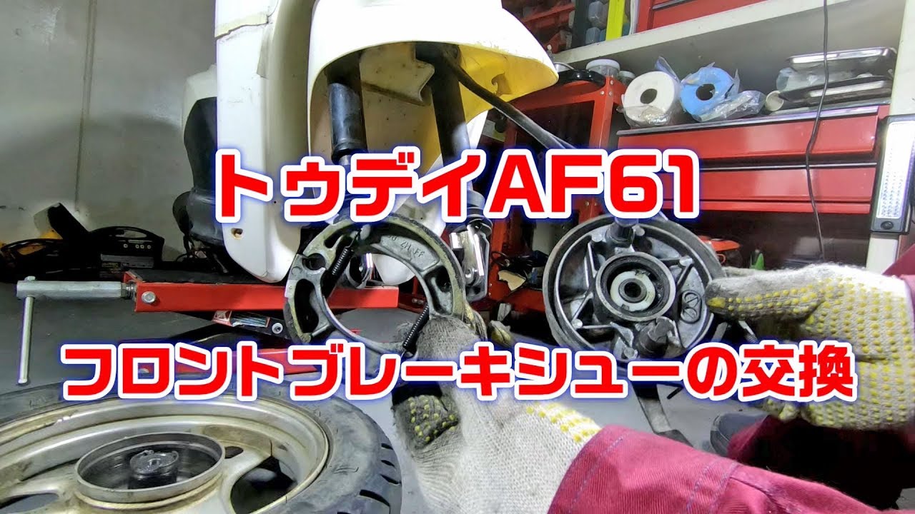 トゥデイAF61のフロントブレーキシュー交換作業動画
