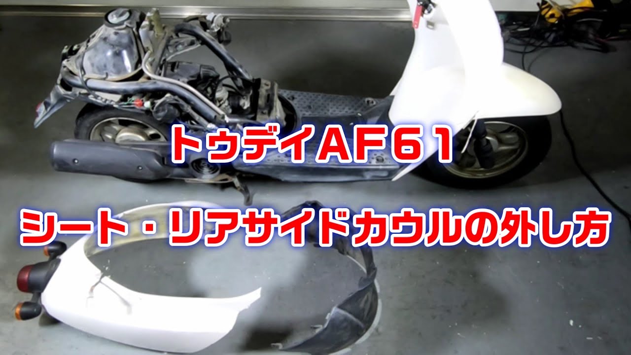 トゥデイAF61のシートカウル・サイドリアカウルを外す作業動画