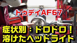 トゥデイAF61/67:症状別トラブル修理|ヘッドライトカバーがドロドロに溶けた!原因と修理作業動画