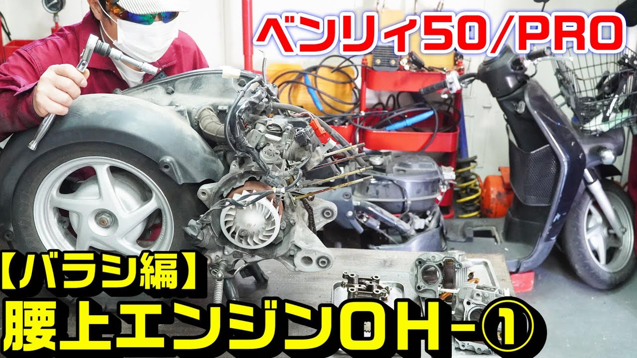 【ベンリィ50/プロ】AA03腰上エンジンオーバーホール①|外し方(バラシ)編:作業動画