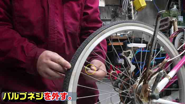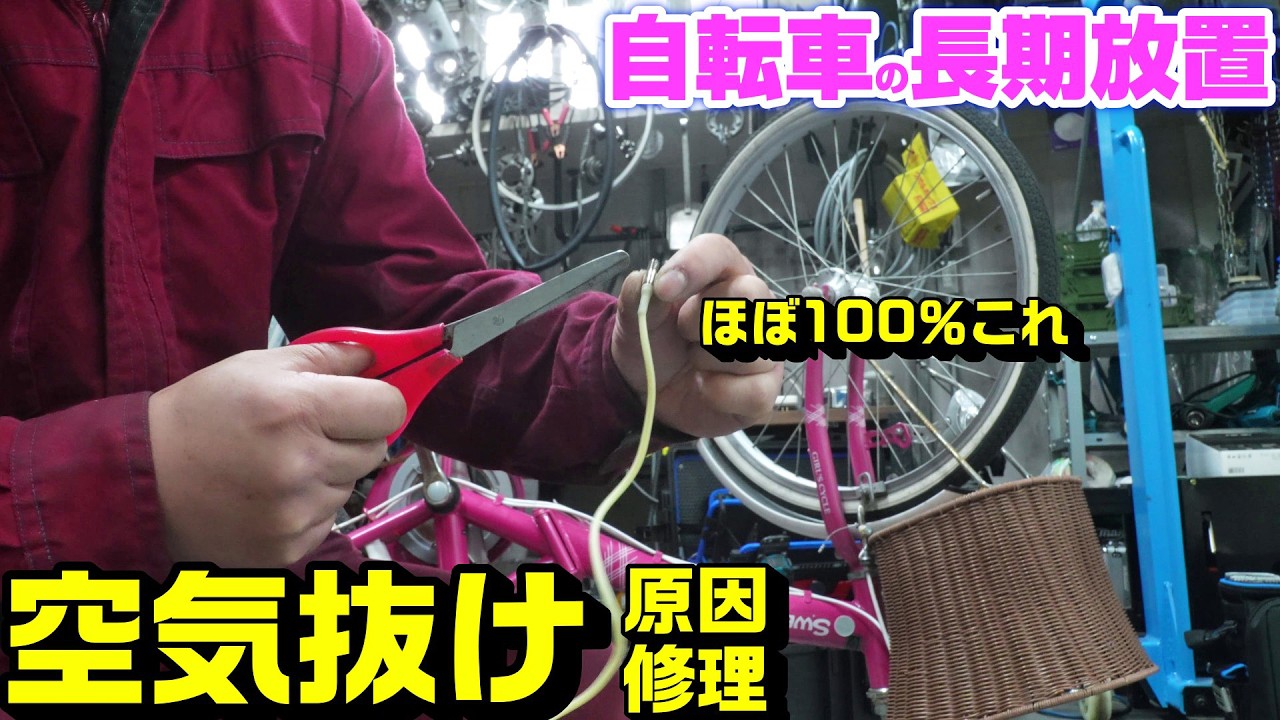 自転車空気抜け修理作業動画