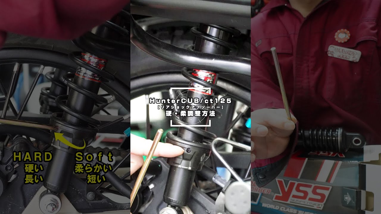 主たる目的の本来はサスペンションの硬さ調整ですが、ことハンターカブ・クロスカブともにシート高があるため足つきが悪いため、短い社外品使用する人多いと思います。