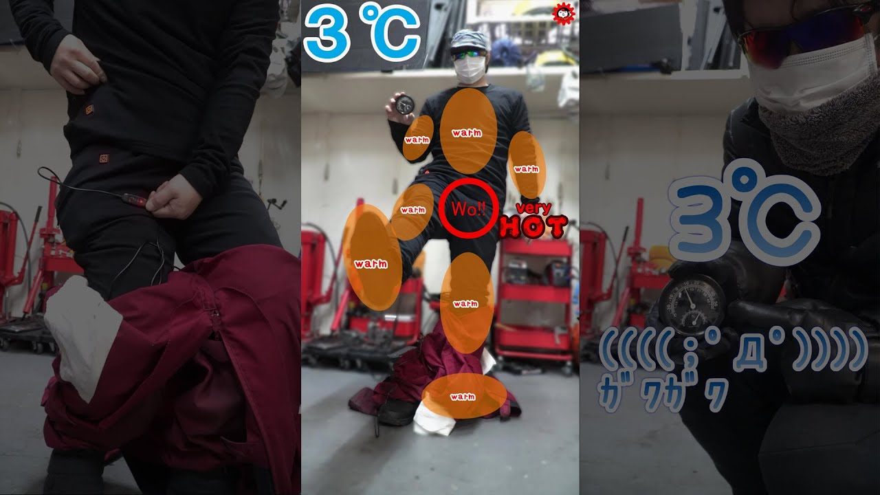 ただ3℃の極寒ガレージの中、普通にツナギを着て動けるのはこれしかないので素晴らしいの一言に尽きる。
